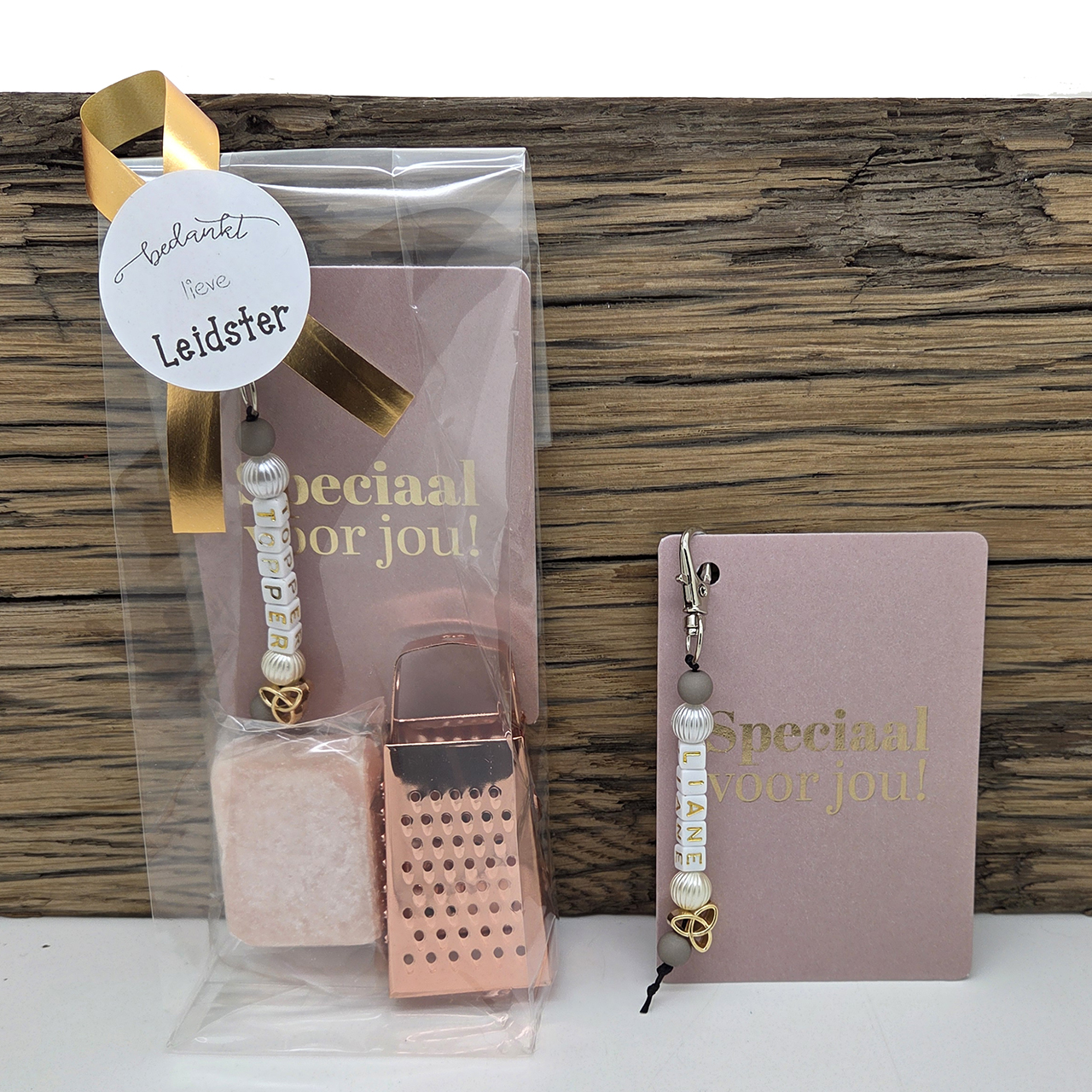 Speciaal voor jou cadeautje met naamsleutelhanger is een super leuk bedankje. Je kunt zelf kiezen welk naam of woord je op de sleutelhanger wil. De prijs voor de sleutelhanger is voor 1 naam of woord. Wil je er 2 namen op dan kun je daarbij de extra opties voor kiezen. Ook is het mogelijk om de sleutelhanger te laten maken topper, collega, bedankt, juf of een ander woord met maximaal 10 letters.