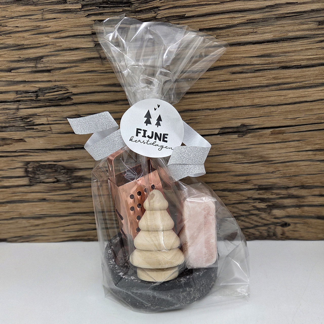 Amberblokje setje met mini rasp kerstoom of sneeuwpop is een super leuke bedankje met kerst. Het is ook mogelijk dit leuke cadeautje te bestellen met een houten poppetje. Kies welke kleur rasp en geurblokje je er graag bij wil geven.