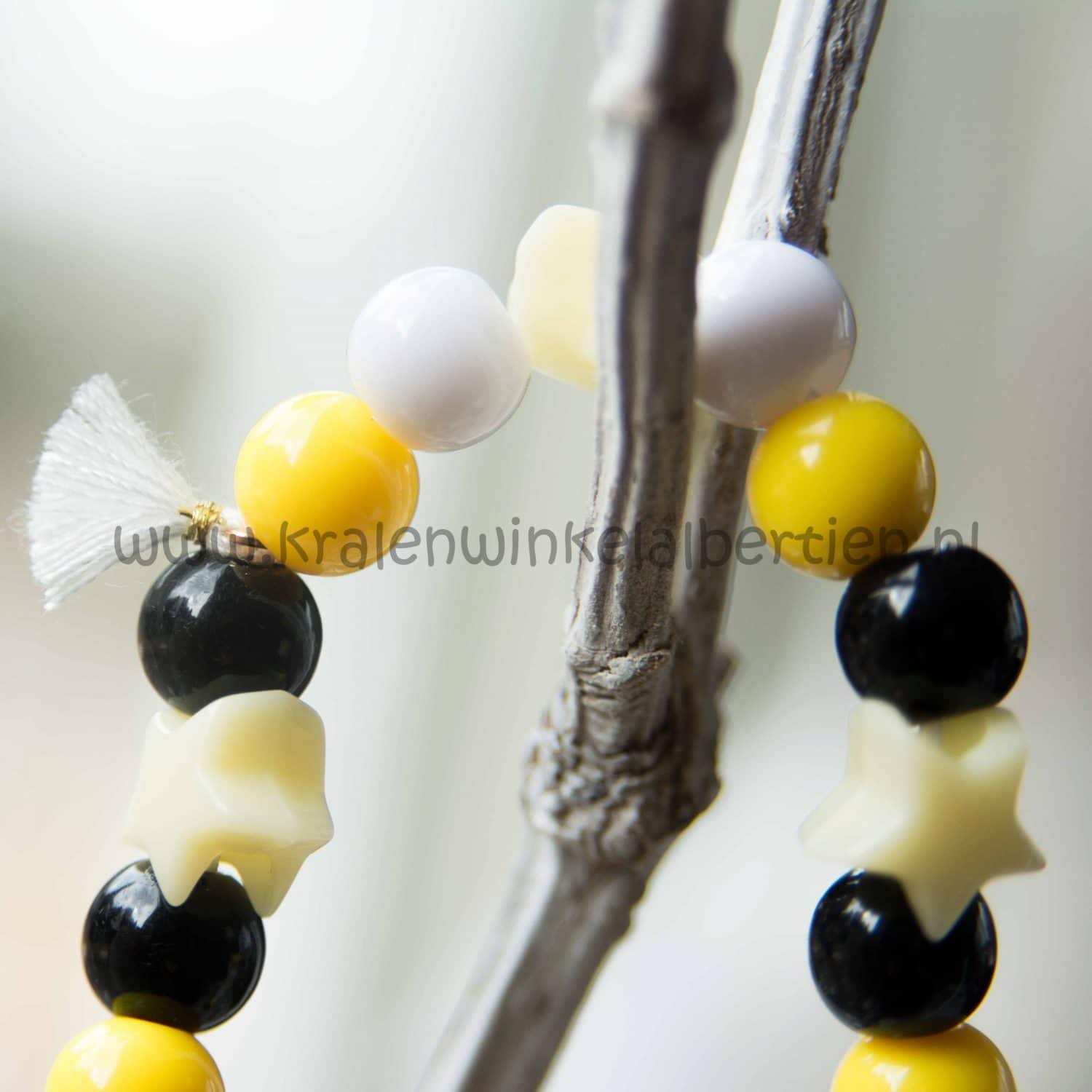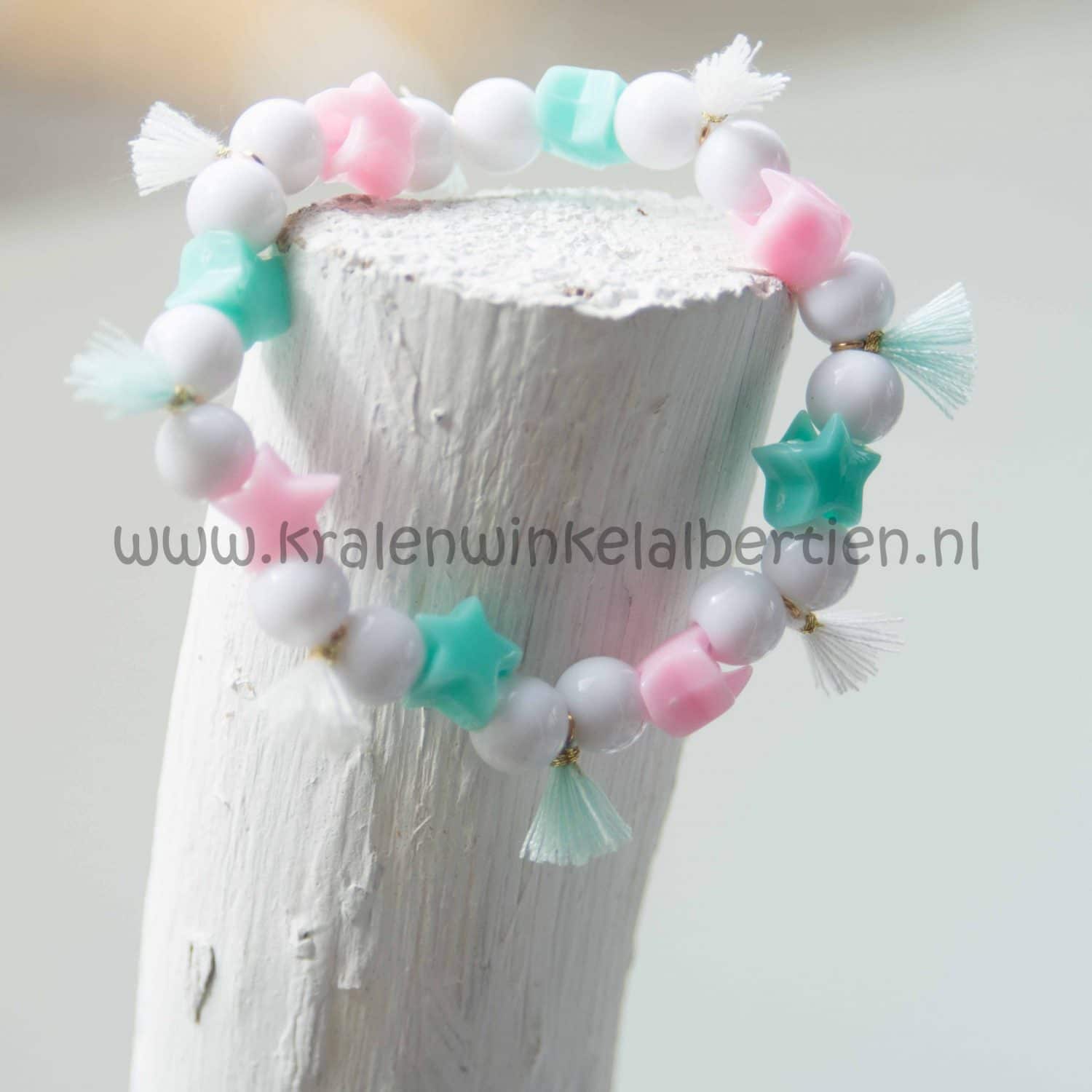 Ster kralen worden geleverd in een mooie mix van pastel tinten. De sterretjes kralen zijn 10mm breed, 10mm lang en zijn 7mm dik. Deze kralen in de vorm van een ster hebben een mooi groot rijg gat van ongeveer 4mm. Het voordeel van dit mooie grote gat is dat je deze kralen op dikker koord kunt gebruiken. Je kunt er ook heel makkelijk 2 meerdere koorden door rijgen. Bij het maken van armbanden of het maken van sleutelhangers kan dit heel handig zijn.