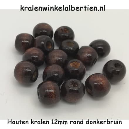 Donkerbruine houten kralen met een diameter van 12mm. De kraal is 11mm hoog waardoor hij niet helemaal rond is. Ze hebben een groot rijg gat van 4mm, dit is ideaal voor het rijgen op dikker sieraden koord of om te rijgen met meerdere draden.
