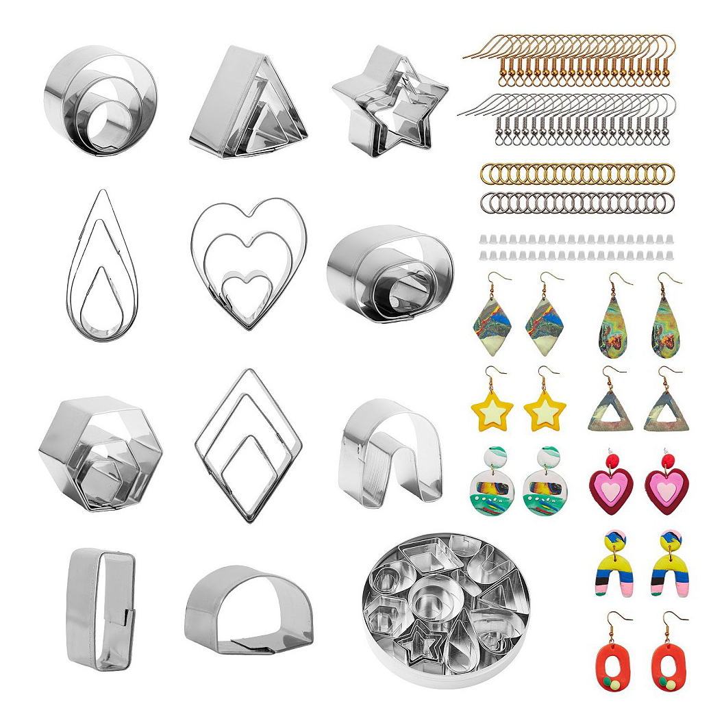 Grote oorbellen cutters set voor het maken van polymeerklei oorbellen. De set bestaat uit maar liefst 147 onderdelen.