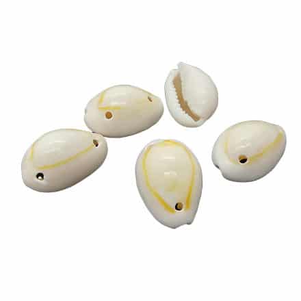 Kauri schelpjes met 2 oogjes zijn perfect om een enkelbandje van te maken in de prachtige Ibiza stijl. Maak jezelf helemaal zomer proof met een sieraad van deze mooie kraal. De kraal zelf heeft 2 rijg gaatjes aan iedere zijde om koord door te rijgen, deze gaatjes zijn 0.9mm. De schelpen zelf variëren tussen de 15 en 19mm lang en 11 en 13mm breed. Ook per zakje kan dit verschillen.